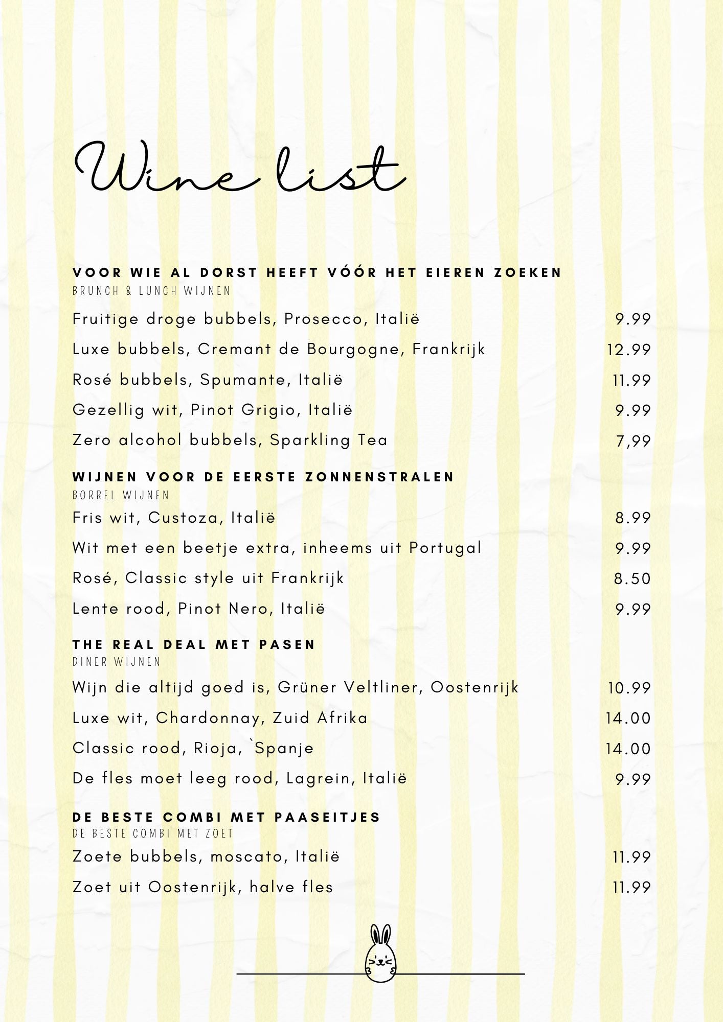 Speciaal voor de Paasdagen hebben we een wijnkaart gemaakt met wijnen die perfect passen bij een paasbrunch, diner of gezellige borrel. Geen ingewikkeld wijnjargon, geen keuzestress – gewoon goede wijnen waar je blij van wordt.